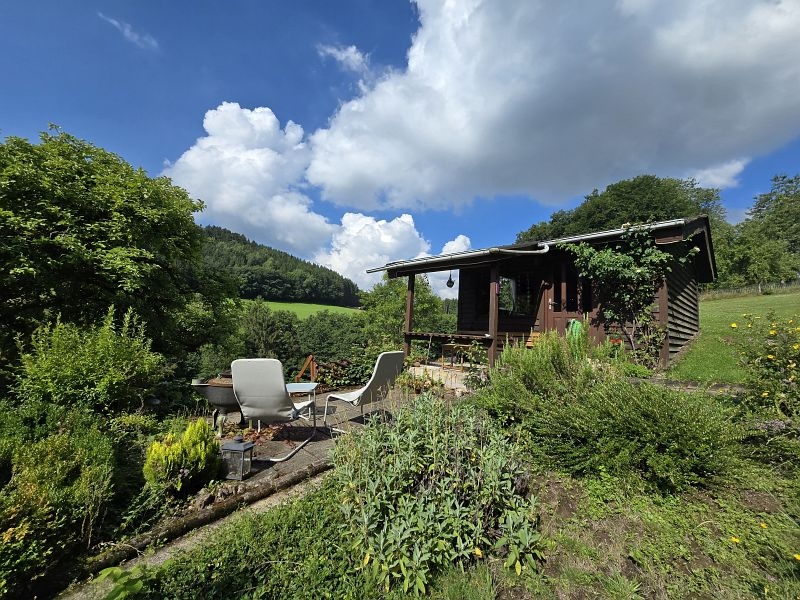 Oberhalb des Hauses wurde ein kleines Gartenparadies mit Gartenhaus angelegt. Von hier aus genießt man einen wunderschönen Ausblick in die Natur.