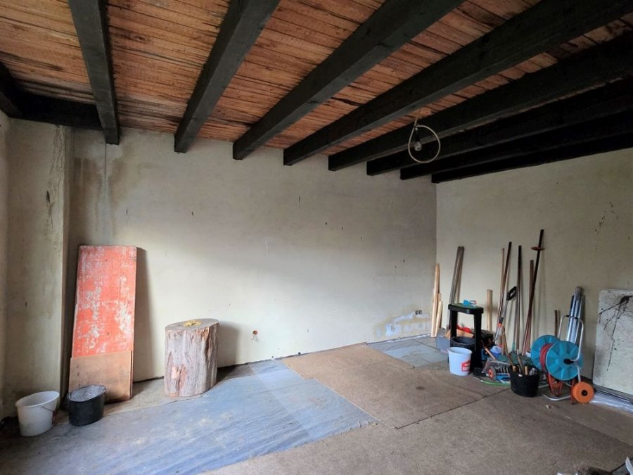 Die Garage bietet Platz für eine Auto. Weitere Fahrzeuge können im Beriech der Zufahrt und links neben dem Wohnhaus geparkt werden. In der Verlängerung der Garage befindet sich ein noch nicht ausgebautes Zimmer mit separatem Kaminanschluss.