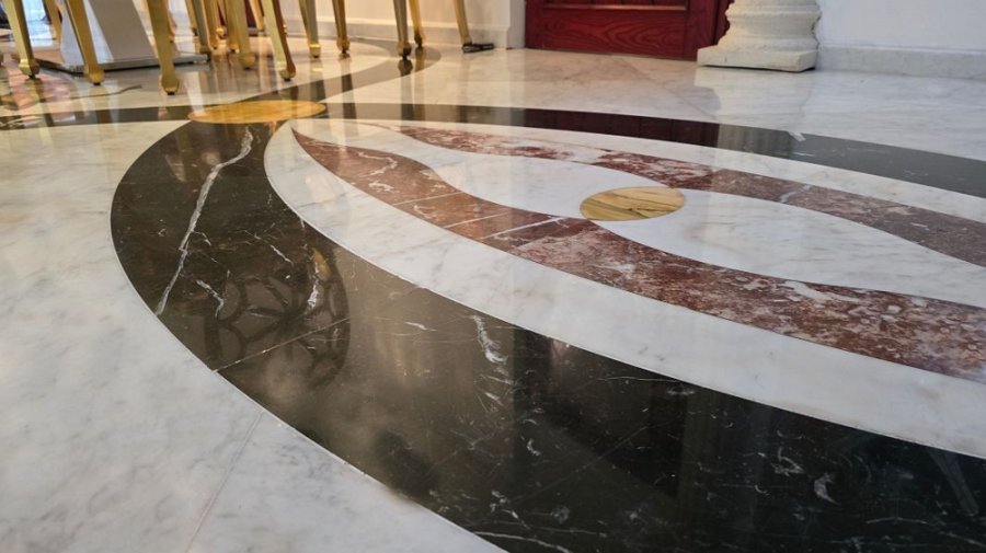 Das gesamte Wohnhaus wurde mit äußerst viel Liebe zum Detail ausgebaut. Der Bodenbelag im Wohn- und Esszimmer wurde in hochwertigem edlem Marmor verlegt.