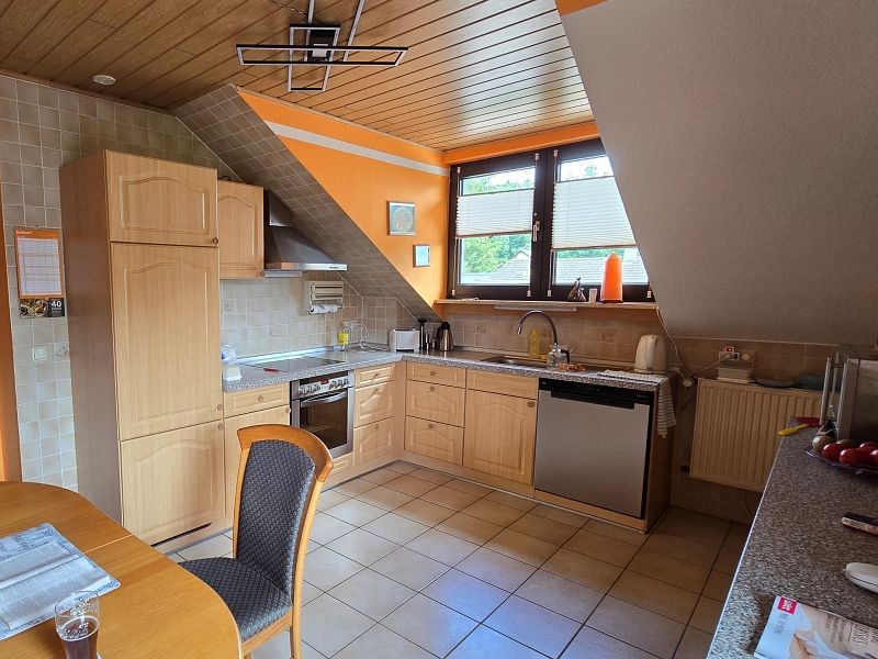 Erdgeschoss und Dachgeschoss sind durch eine gut begehbare massive Treppe miteinander verbunden.